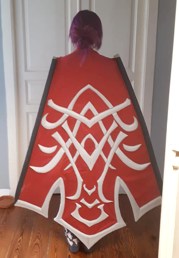 A lot of designs from World of Warcraft (WoW) and Heroes of the Storm (HotS) have clothes or capes with big “metallic” bevels on them. In my opinion it’s a bit hard to get this 3d effect just with fabric, so I decided to mix fabric and Eva Foam to achieve this look.